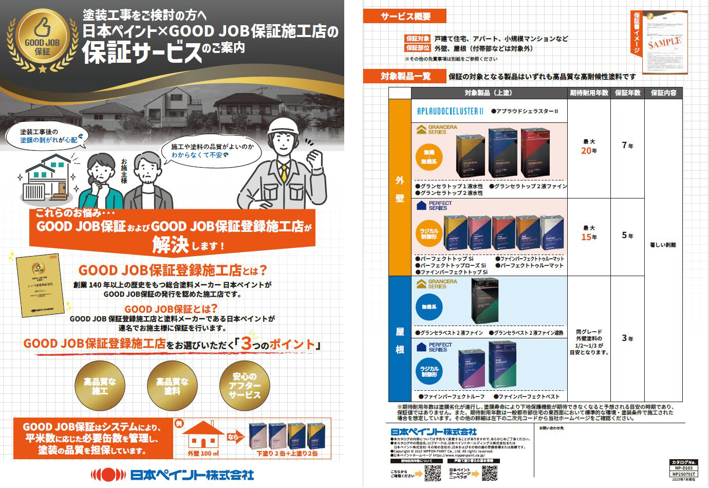 くわえて、オールペイントは「日本ペイント×GOOD JOB保証登録認定施工店」ですので、安心の日本ペイントとのW保証が受けられます。施工後の保証にご不安な方も、近畿エリア最優秀賞受賞のオールペイントに是非お任せくださいませ。