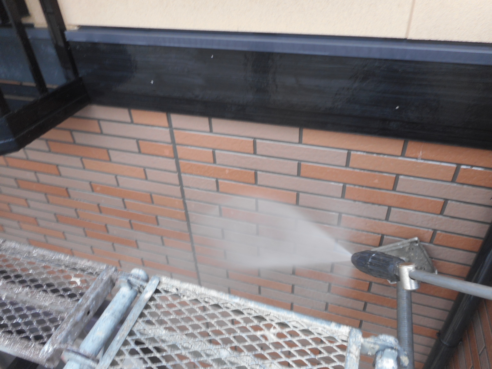 経年により蓄積した頑固な汚れも、業務用の高圧洗浄機により綺麗に洗浄されていきます。