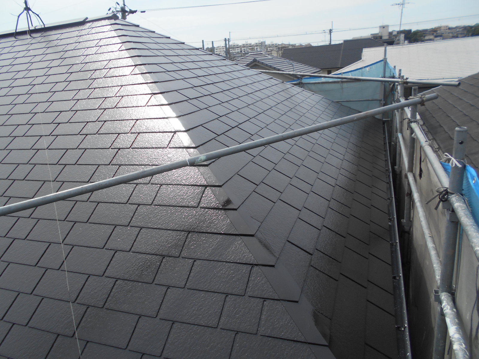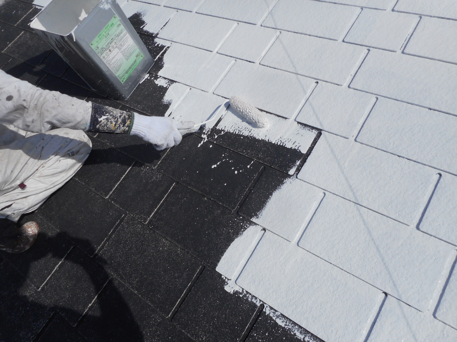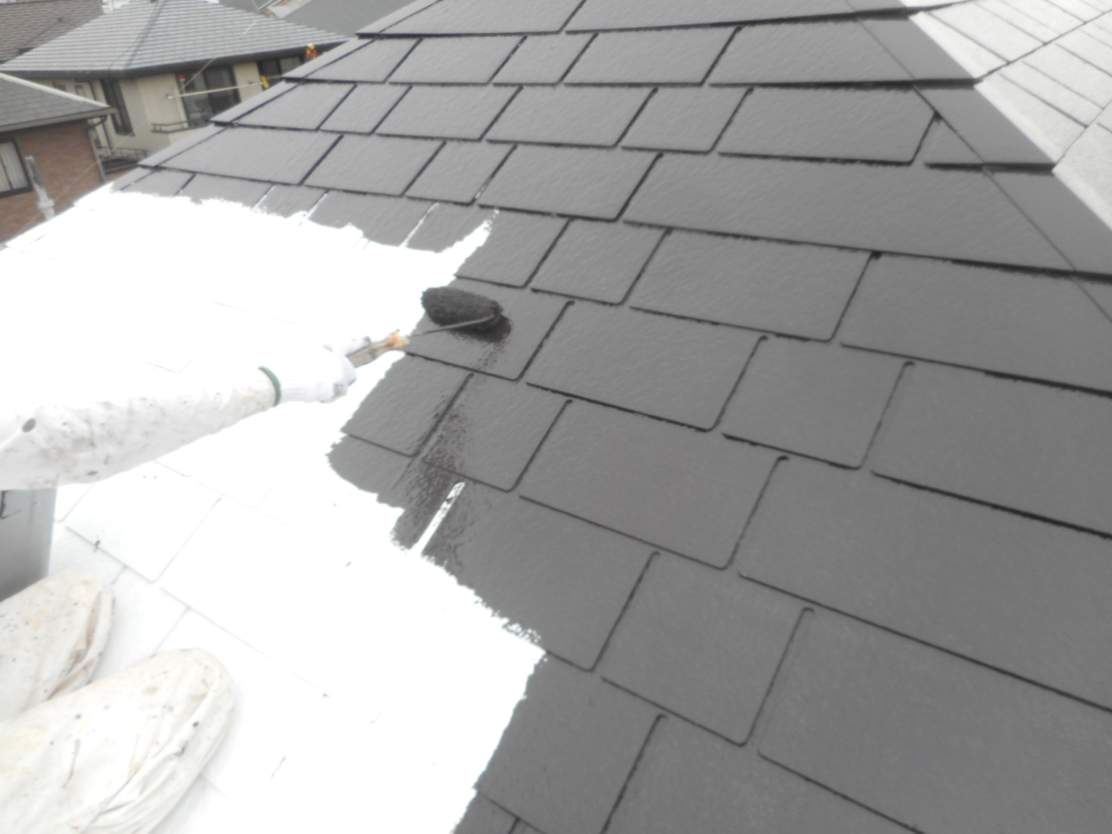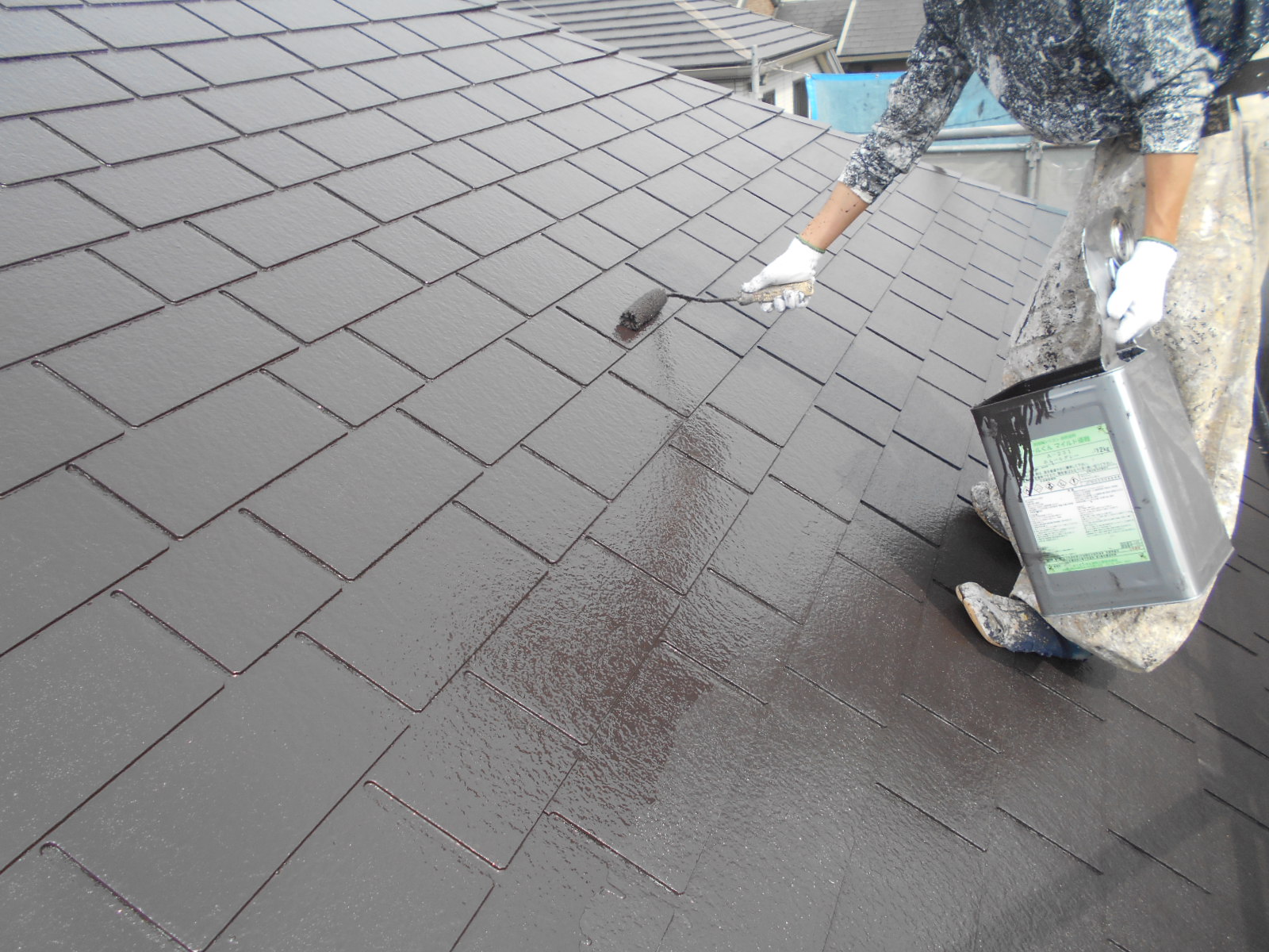屋根塗装の仕上げとなる上塗り工程のお写真です。