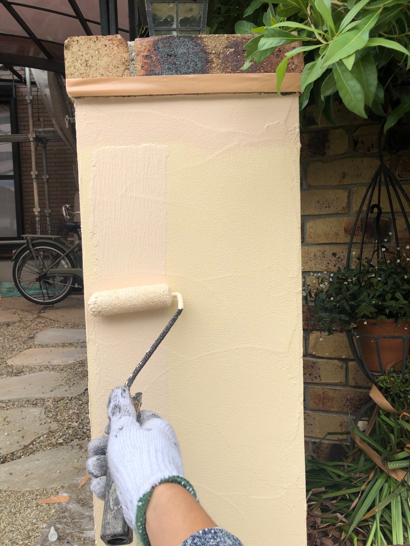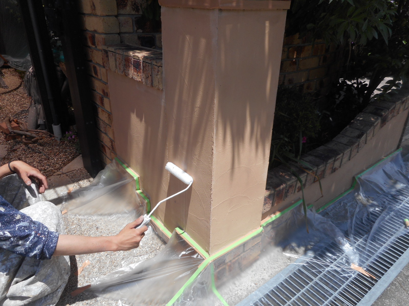 経年による劣化が見受けられた門まわりも、下塗りから丁寧に塗り替えを行っていきます。
