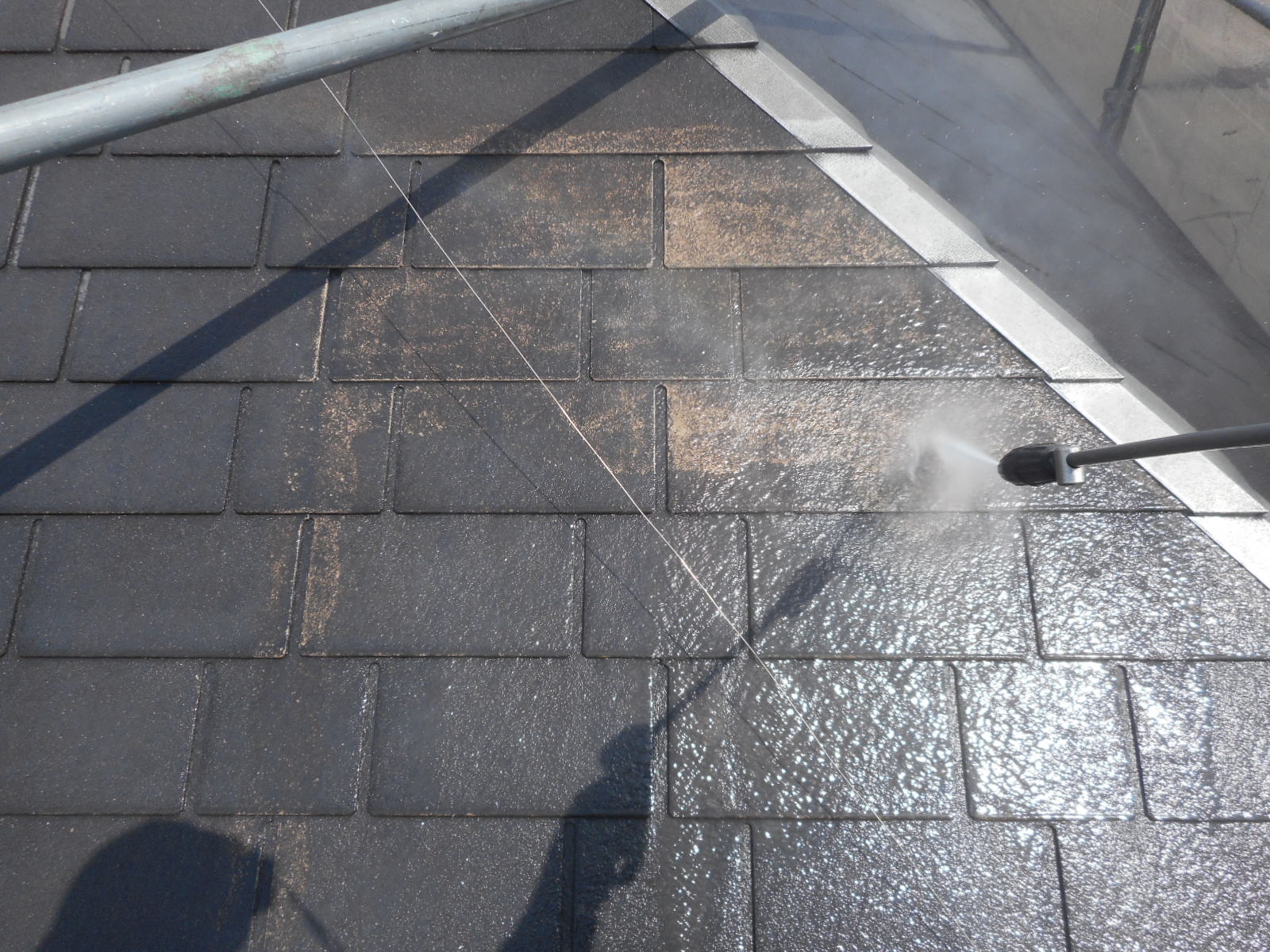 まずは屋根の高圧洗浄より行っていきます。