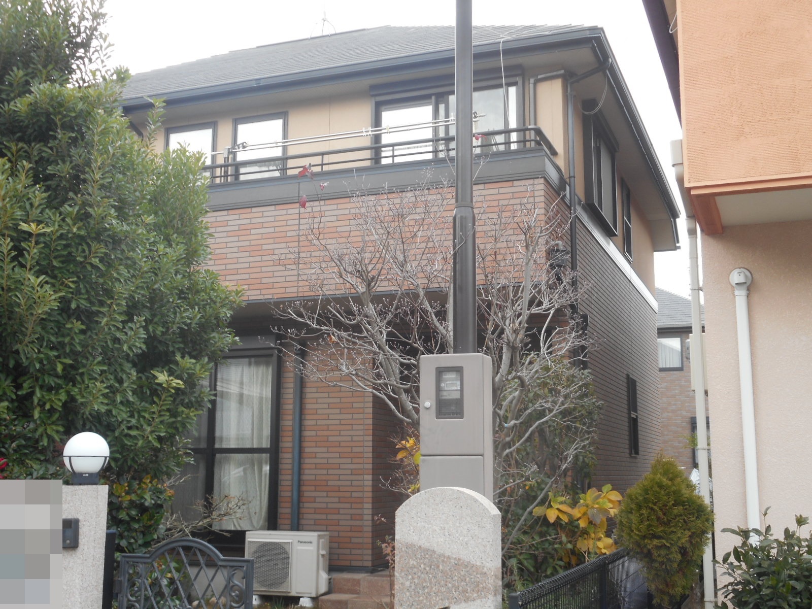 塗り替えを検討されているとのことでご相談をいただき現地調査に伺ったところ、建物の1階は意匠性サイディング、2階はリシン仕上げで構成されており、全体的にとても落ち着いた色合いのお家となっていました。 外壁や屋根、附帯部は築年数に応じた劣化が見受けられましたが、1階の意匠性サイディングの状態がとても良好でしたので、O様とご相談のうえ、1階のレンガ調サイディングの風合いはそのままに残す施工内容をご提案させていただきました。 門廻りや外塀は建物の外観と調和性のあるしっくりと馴染むカラーをお勧めいたしております。 |