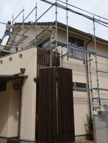 着工日の数日前には近隣様へのごあいさつ廻りと粗品配布を担当者にてさせて頂きます。着工日は足場組立から始まります
